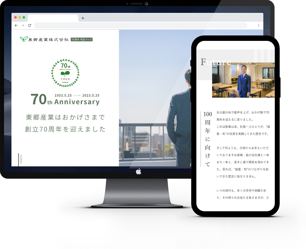 コーポレートサイトのリニューアルと合わせ、創立70周年記念コンテンツを制作したいとご依頼いただきました。